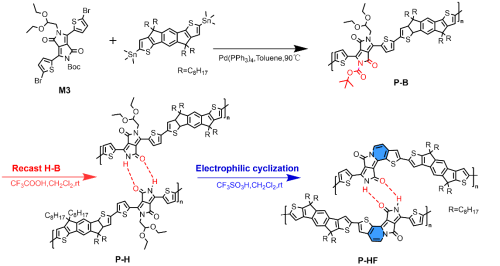 图1. P-B, P-H 和 P-HF聚合物合成路线