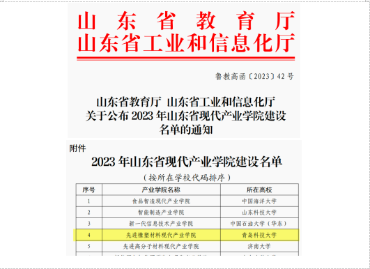 山东省现代产业学院——先进橡塑材料现代产业学院