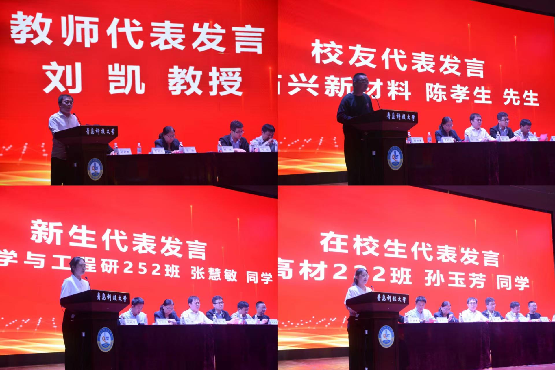 10月14日下午,yl6776永利集团“橡”绘青春志 聚合向未来2025级新生开学典礼在四方校区西礼堂隆重举行。1996级校友、天佑兴新材料总经理陈孝生出席活动,学院院长张建明、党委书记宣宗伟、副院长王庆富、副院长孙举涛、副院长刘恒、橡塑重点实验室常务副主任史新妍、各教研室主任、全体班主任、全体辅导员以及2025级全体新生参加了本次大会。大会由党委副书记兼副院长贾明明主持。